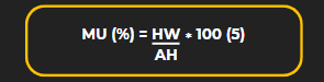 This equation calculates the percentage of the total time available that was actually used to operate the equipment. The higher the value resulting from the equation, the more efficiently the available assets were used. For example, if the MU is 80%, this means that the equipment was used effectively for 80% of the time available for operation.