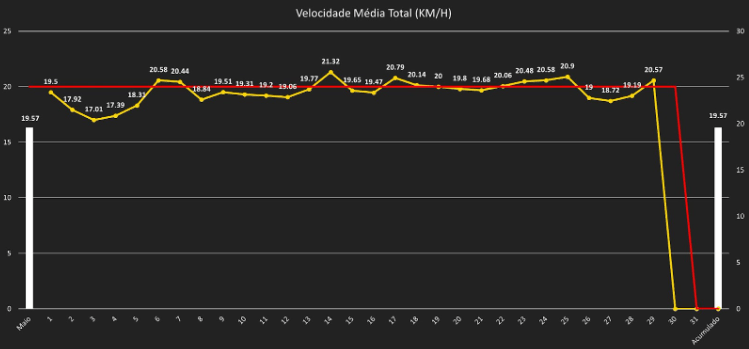 O gráfico de velocidade média mensal é uma ferramenta útil para avaliar o desempenho do equipamento e a eficiência do operador.