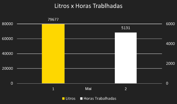 É possível utilizar o gráfico de Km/L para comparar a eficiência de diferentes equipamentos, assim como a sua eficiência ao longo do tempo. Isto pode identificar, como por exemplo, tendências do operador e oportunidades de melhoria.